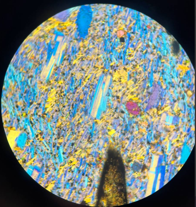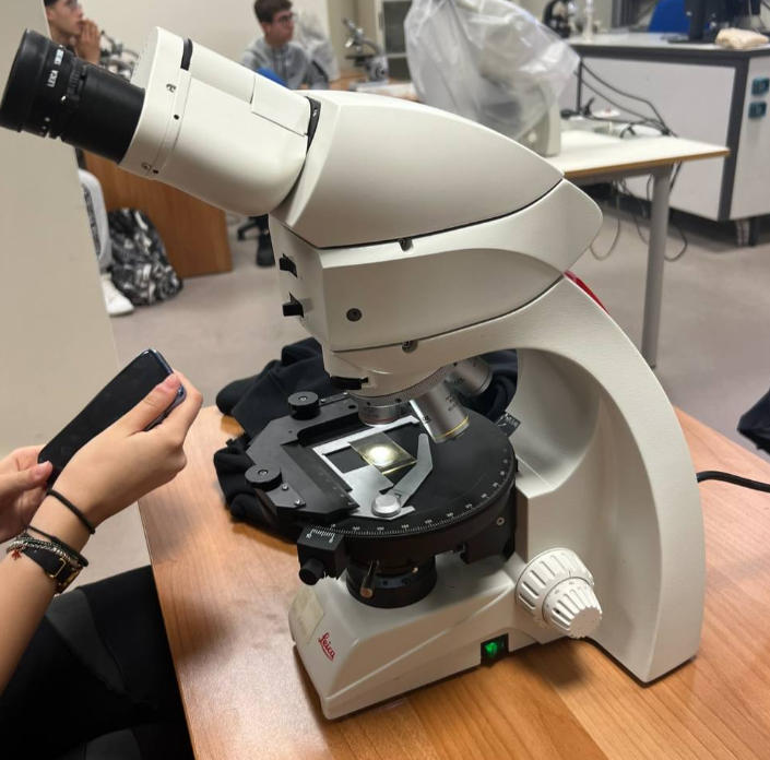 -la seconda: guidati dal dottor Russo, in un laboratorio dell’università, abbiamo avuto l’occasione di esaminare tramite dei microscopi elettronici, delle sezioni di rocce basaltiche in cui è stato facilissimo individuare e poter ammirare i minerali presenti all’interno (è stato così semplice individuare i minerali che a occhi nudo sembravano quasi impercettibili perché il microscopio elettronico ha ingrandito l’immagine della roccia di circa 300.000 volte).