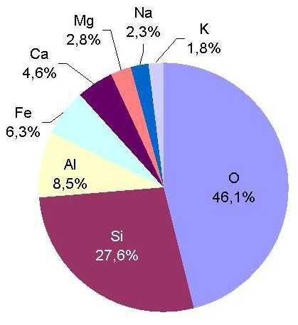 La crosta terrestre è costituita quasi per il 90% da quattro elementi chimici: ossigeno, silicio, alluminio e ferro