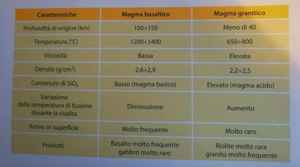 figura: le diverse provenienze dei 2 magmi; quello granitico nasce da una parziale fusione in situ di rocce esistenti, quello basaltico è composto da materiali del mantello o della crosta profonda che salgono per la prima volta in superficie.