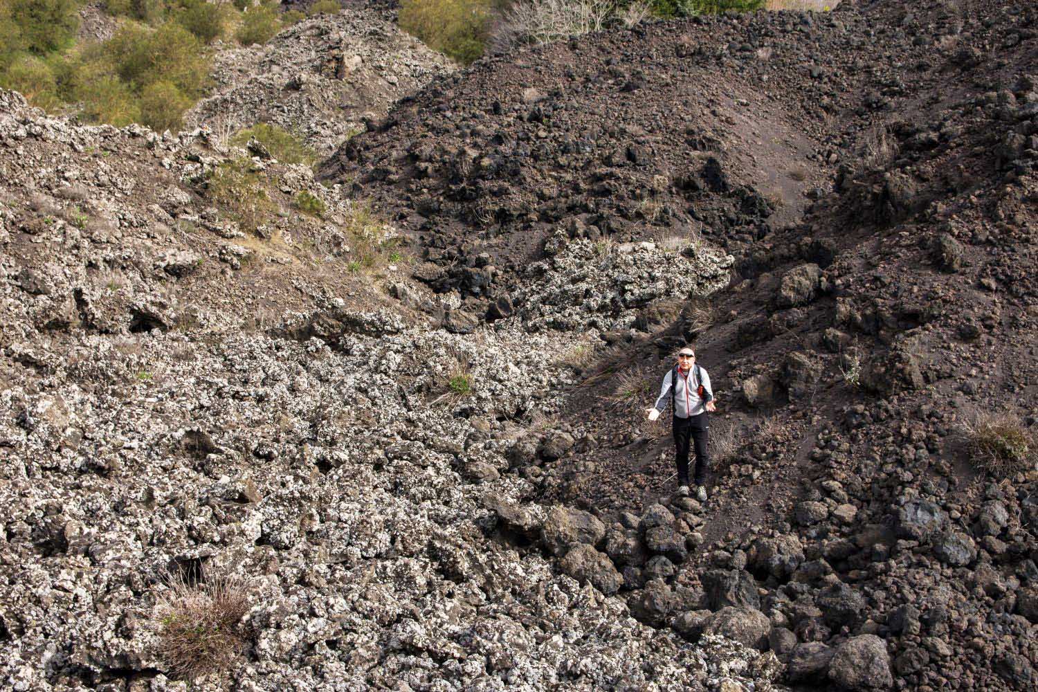 Abbiamo avuto anche l’opportunità di ammirare colate laviche solidificate in cui la parte interna, raffreddandosi più lentamente rispetto alla parte esterna, presenta caratteristiche chimiche diverse rispetto alla parte esterna.