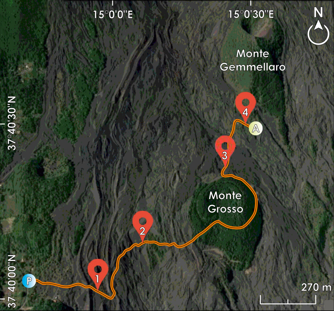 Il percorso didattico di Monte Grosso - Monte Gemellaro è progettato per fornire una panoramica completa dell'Etna, combinando elementi di escursionismo, educazione ambientale e scoperta scientifica. Attraverso un percorso ben segnalato e accessibile, i visitatori avranno l'opportunità di immergersi in un viaggio attraverso milioni di anni di storia geologica e di comprendere gli eventi che hanno plasmato il paesaggio circostante.